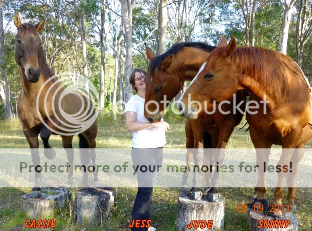 Here's another photo taken at the conclusion of that lesson with the horses doing their favourite activity of stepping up onto the blocks to get their treats.